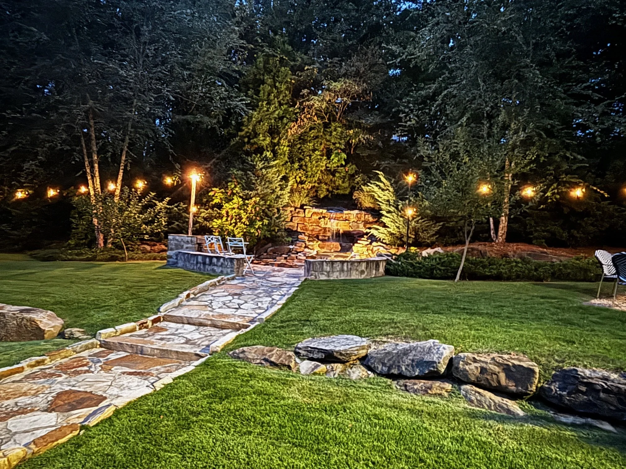 We’re surrounded by nature—with a wooded walking trail, a peaceful grotto with a waterfall, and a wide open green space for use by the community.